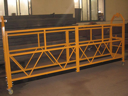 悬吊平台均为拼装式平台。拼装式平台由前栏杆、后栏杆、底架和安装架等部件组成,各部件用螺栓联接,其标准节长为2.5米或2米。